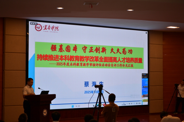 10月9日上午,我校在科技楼学术报告厅召开本科教育教学审核评估线上启动会,会议以线上线下相结合的方式进行。教育部本科教育教学审核评估专家组组长、武汉理工大学原副校长张安富,副组长、江西农业大学原校长赵小敏,以及全体审核评估专家组成员、项目管理员、秘书组成员在线参加会议;省教育厅二级巡视员杨联愚,宜春市人民政府党组成员、副市长严旭辉,省教育厅教育督导处二级调研员王景定,省教育评估检测研究院高教所副所长李志军,全体校领导、各部门主要负责人、各教学院党政负责人以及教师、辅导员、学生代表等参加线下会议。会议分为两个阶段进行,第一阶段由校党委副书记、校长蔡海生主持。