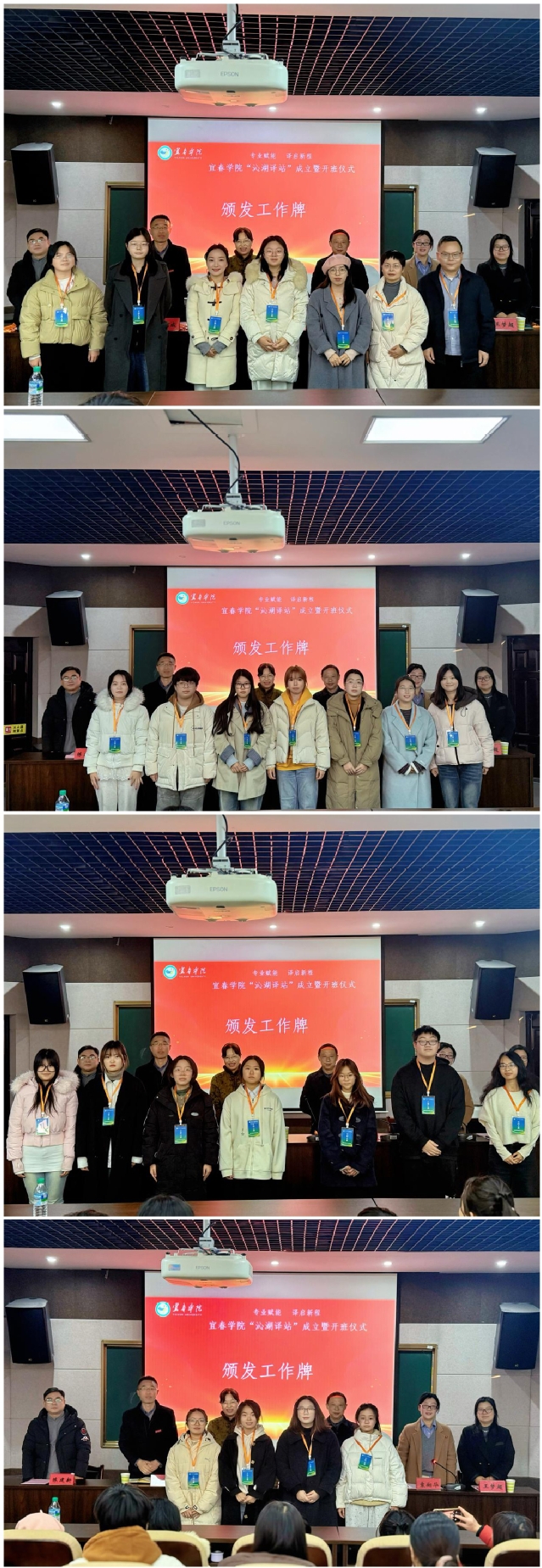 仪式在全体与会人员的合影中圆满落幕。“沁湖译站”的成立,是宜春学院外国语学院主动对接区域发展需求、推动学科专业转型升级的生动实践。这个崭新的平台,将成为融汇校地资源、培养实战人才、传播城市形象的重要引擎,持续为宜春的建设与发展注入澎湃的语言服务动能。