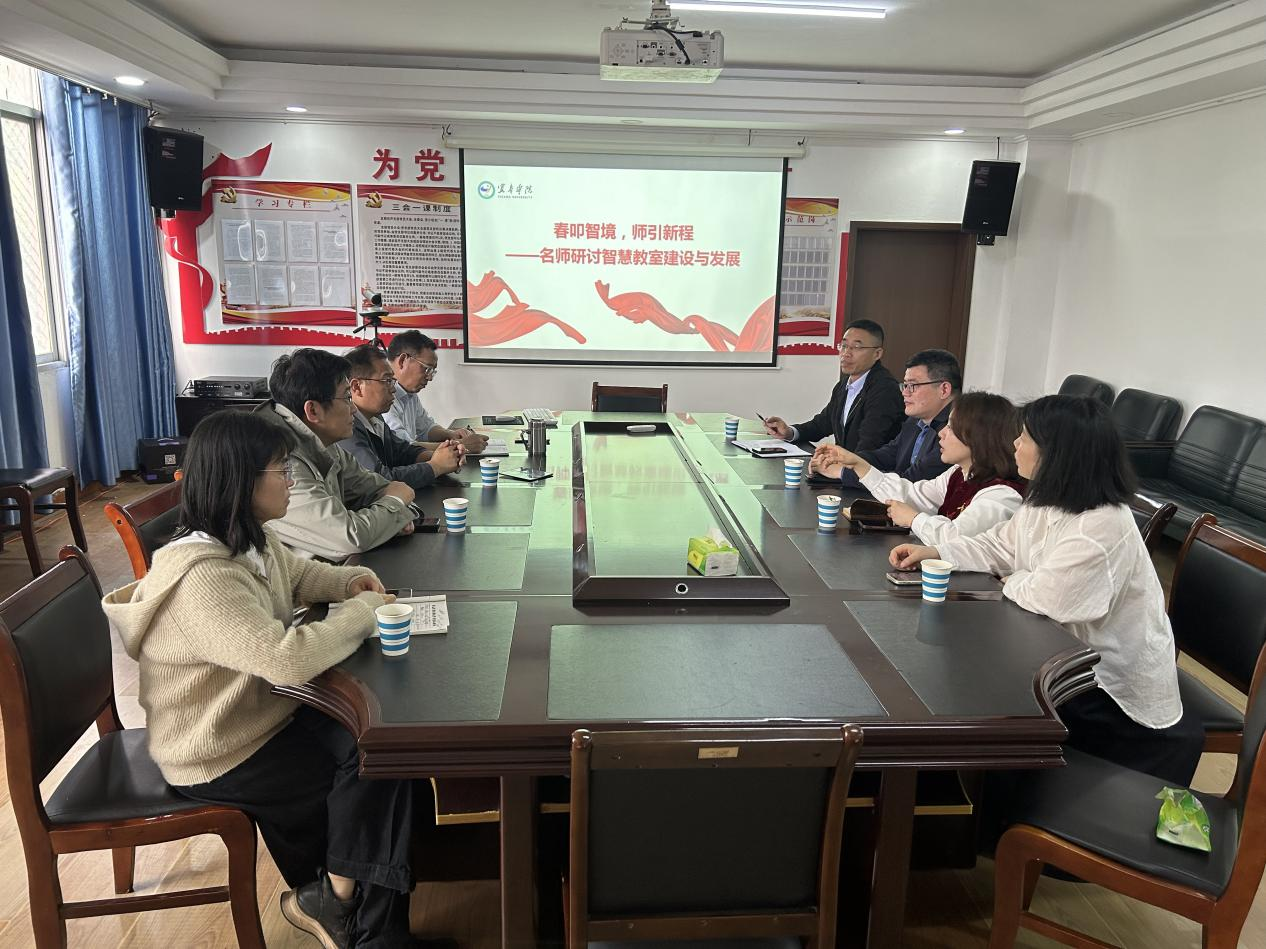 为深入贯彻落实教育部关于教育从数字化向智能化转型的工作部署,加快推进学校智慧教学环境建设与课堂教学创新,4月8日下午,教务处、现代教育技术与信息中心在主教楼N204联合举办“春叩智境,师引新程 ——智慧教室建设发展研讨会”。学校优秀教师代表俞燎宏、武建中、屈红林、詹莎莉、郑爱英等应邀参会,研讨会由现代教育技术与信息中心周明元主持,教务处副处长李鹏成出席。